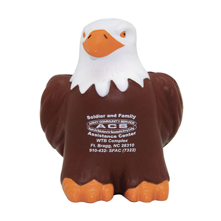 Your next promotional campaign will soar above the competition when you add this eagle shaped stress reliever to your line of giveaways! Made from high-quality, durable foam material, it provides satisfying resistance when squeezed, helping to reduce tension and anxiety during busy workdays. Perfect for promoting your company at any event, each eagle will put your brand name or logo on display thanks to our customization capabilities. Show your support for an upcoming fundraiser event for wildlife conservation or show your patriotism! Whether used as trade show swag, customer appreciation gifts, or employee wellness items, these stress balls offer great value and lasting impact.