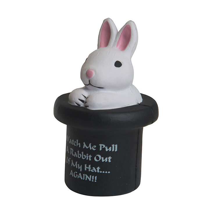 Hypnotize your customers and win over their heart with this cute bunny peeking out of a magician's hat! Made from high-quality, durable foam material, it provides satisfying resistance when squeezed, helping to reduce tension and anxiety during busy workdays. This adorable stress reliever is perfect for squeezing away tension and bringing a smile to your face. Ideal for magicians, event planners, and anyone who loves a bit of magic, it can be customized with your brand name, logo, or message. Whether used as a corporate giveaway, trade show merchandise, or employee wellness gift, this whimsical stress reliever appeals to all ages.